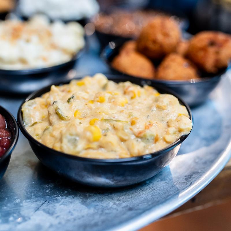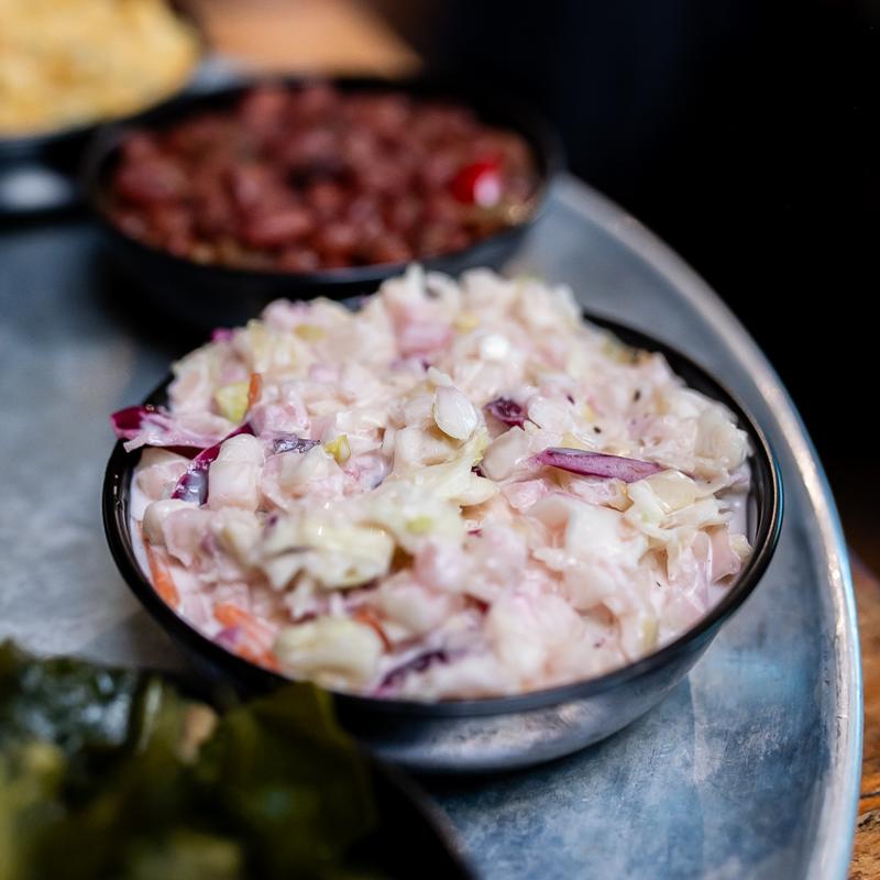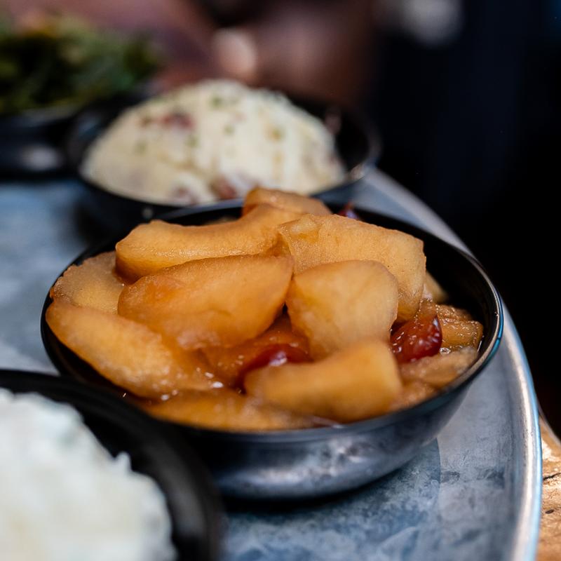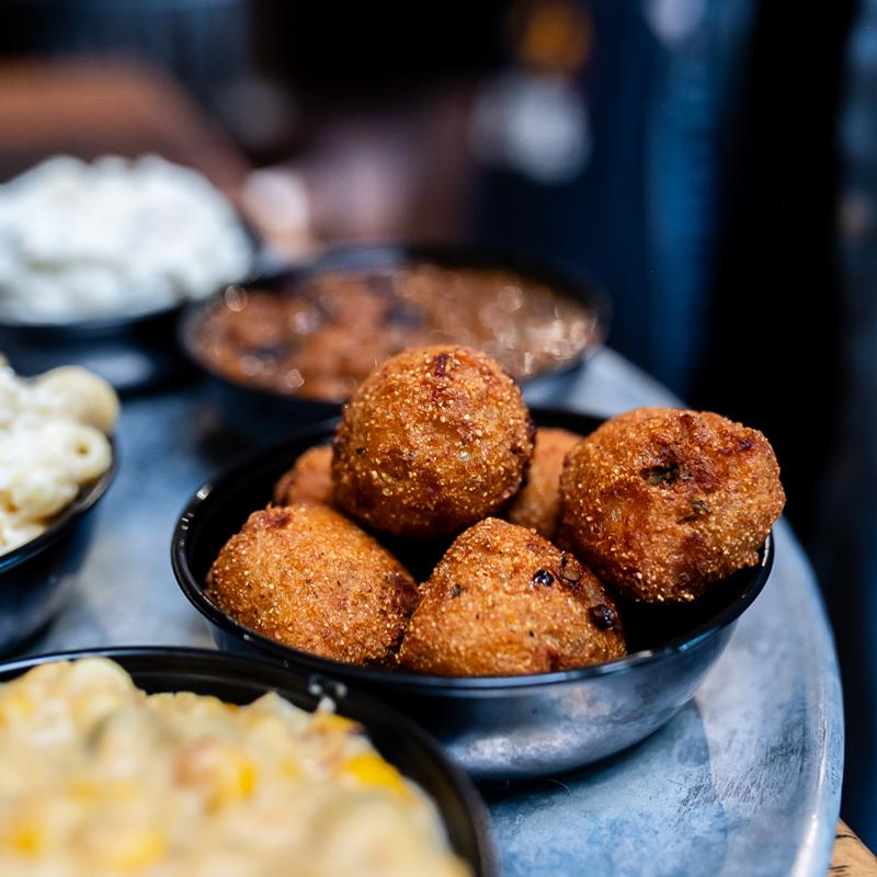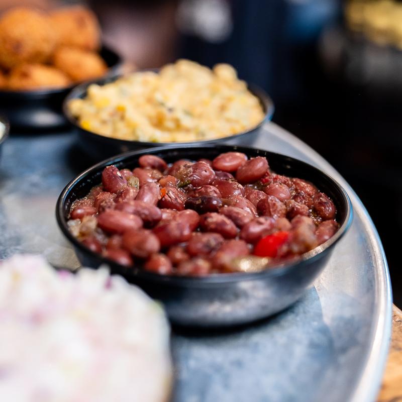 Baked Beans • Cole Slaw • Collard Greens • Corn Bake • Mac & Cheese • Mashed Potatoes • Potato Salad • Red Beans & Rice • Spiced Apples