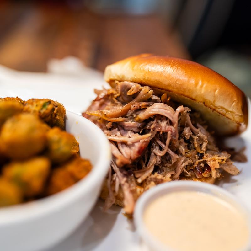 Tender slow-smoked pork butt shredded & served on our brioche bun