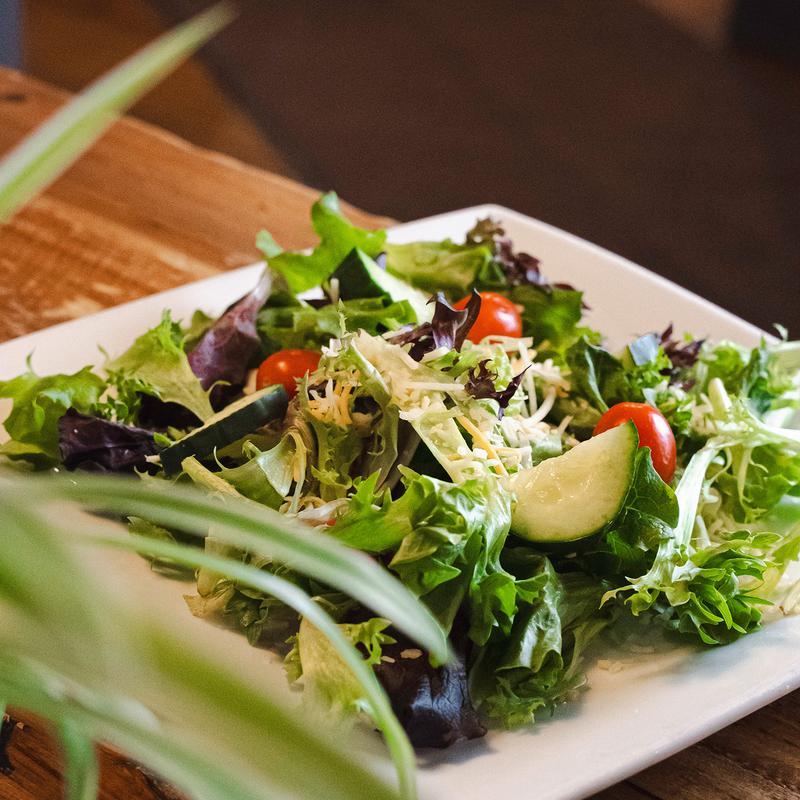Mixed greens, shredded cheese, tomatoes, & cucumbers. Served with choice of dressing. (GF)