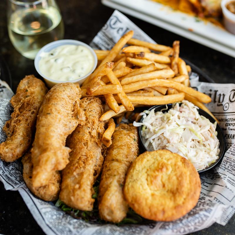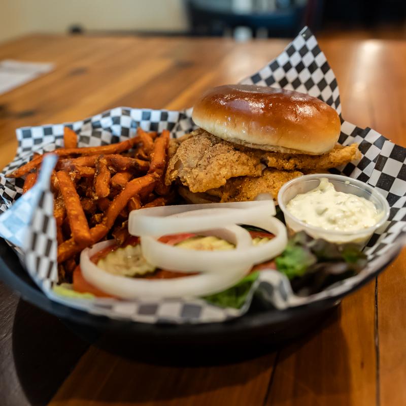 Our catfish is lightly dusted with seasoned cornmeal then deep fried. Served with our house-made tartar sauce, lettuce, tomato, pickles, & onion | Blackened upon request.