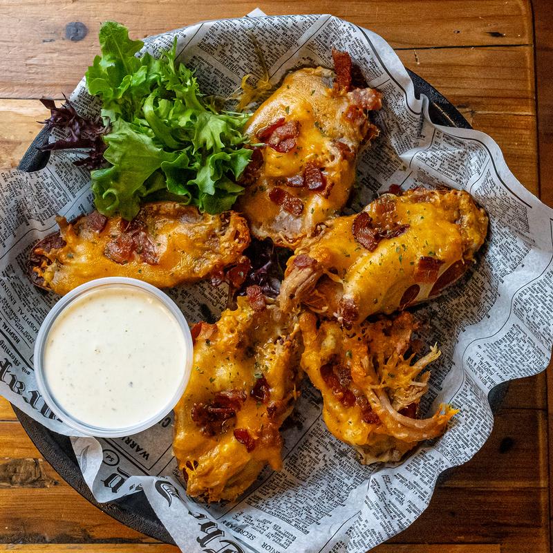 Filled with our hickory smoked Pulled Pork, smoked bacon, & shredded cheese. Served with Ranch. (GF)