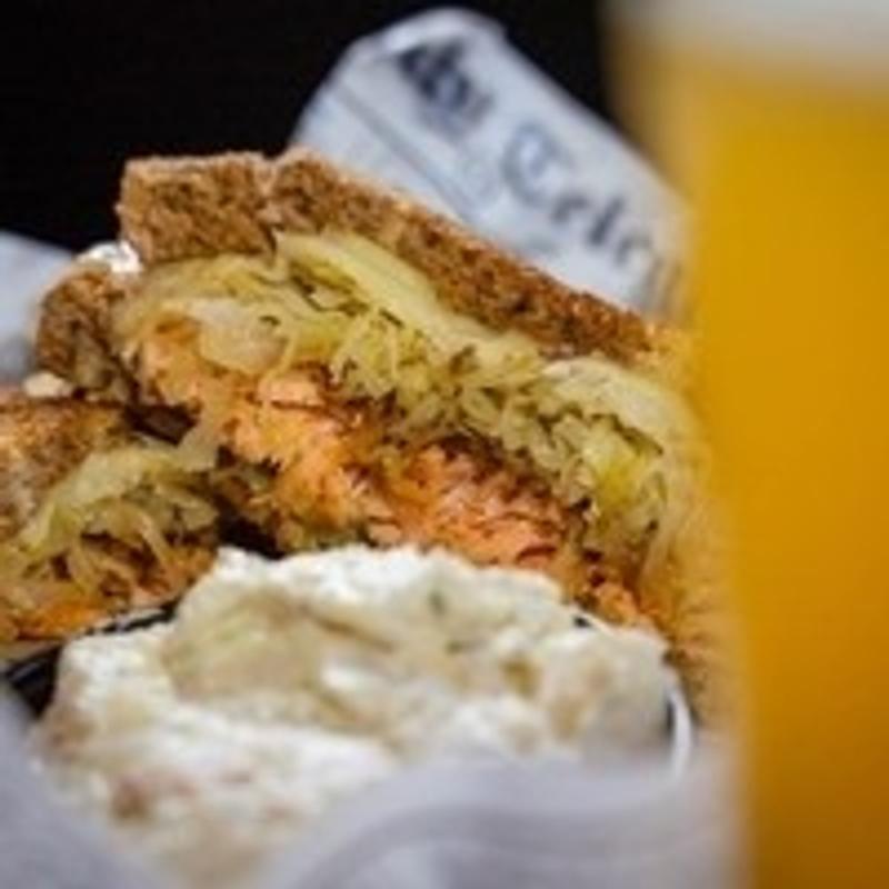 A twist on the original! Wild salmon topped with sauerkraut, melted Swiss & our house, made tartar sauce. Served on thick Marble rye.