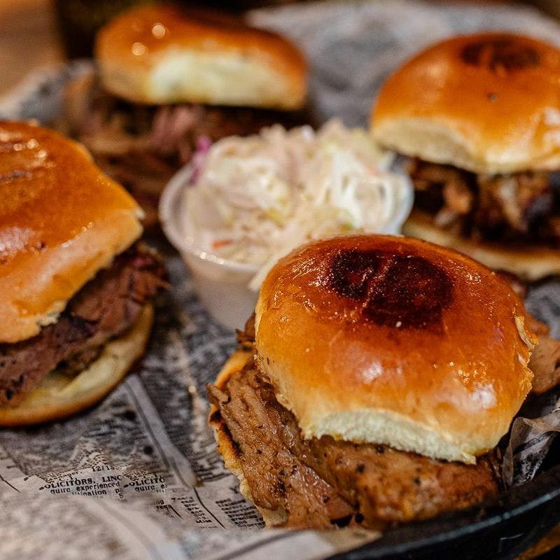 Two Carolina Pulled Pork & two Texas Beef Brisket minis. Served with slaw.