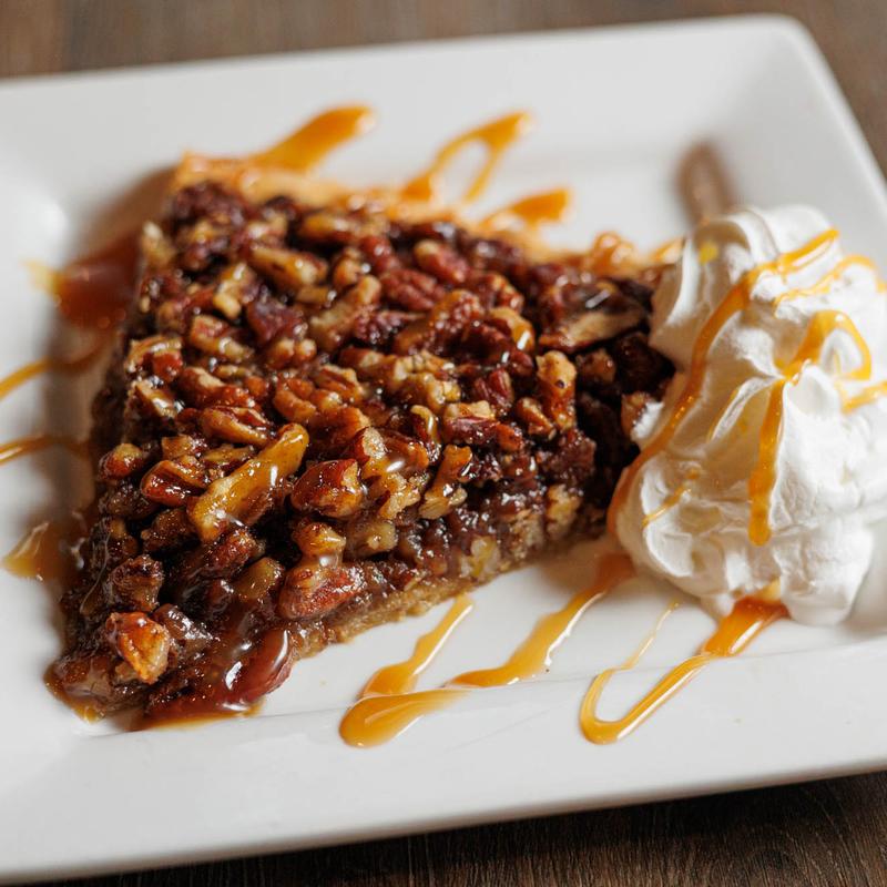 Butter, brown sugar, cream, eggs & pecans all made happy with a splash of Kentucky bourbon. Served with whipped cream & caramel.