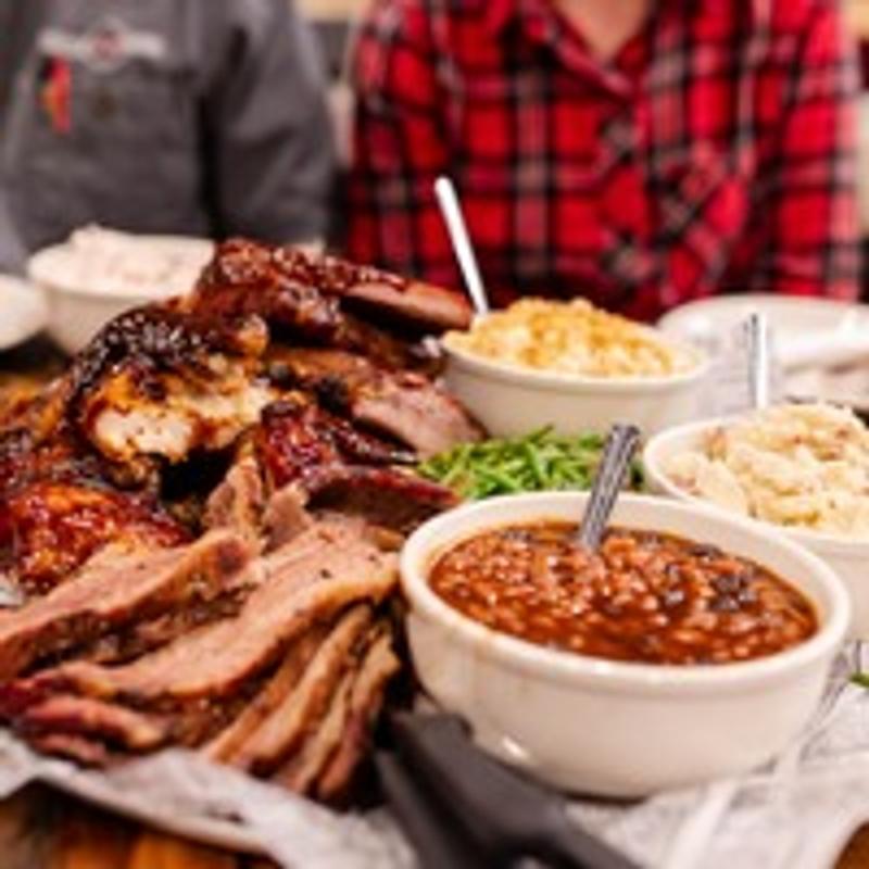 Full Rack of St. Louis Ribs • Whole Chicken • Half Pound of Pulled Pork • Half Pound of Beef Brisket • 4 large sides • 6 Cornbread | Serves up to 5-7 people (depending on appetite). No Substitutions.